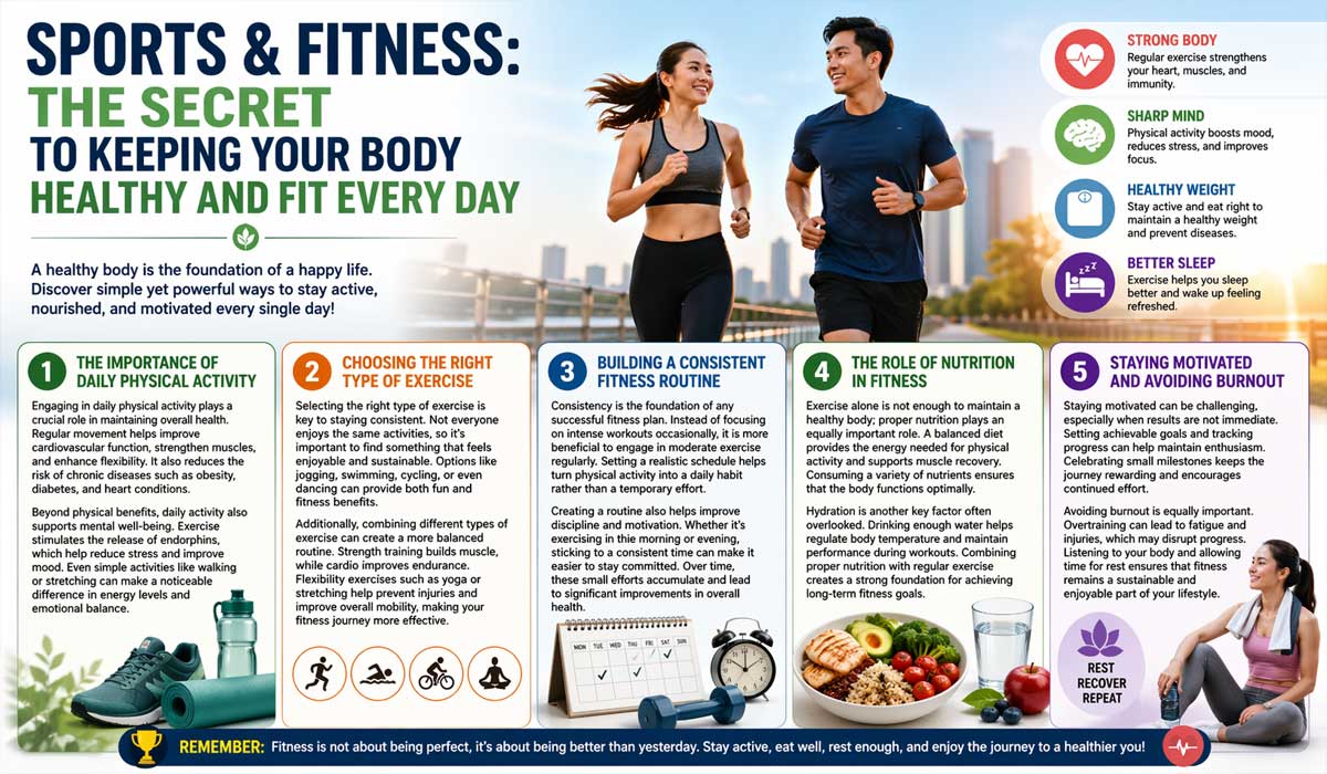 Sports and fitness are essential components of a healthy and balanced life. By incorporating regular physical activity, choosing enjoyable exercises, maintaining consistency, and supporting the body with proper nutrition, anyone can achieve lasting health benefits. The key lies in building habits that are realistic and sustainable.